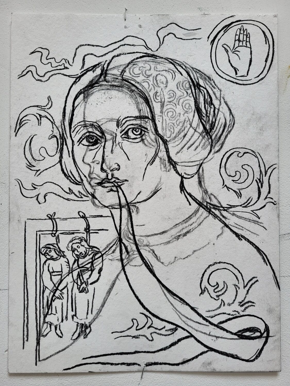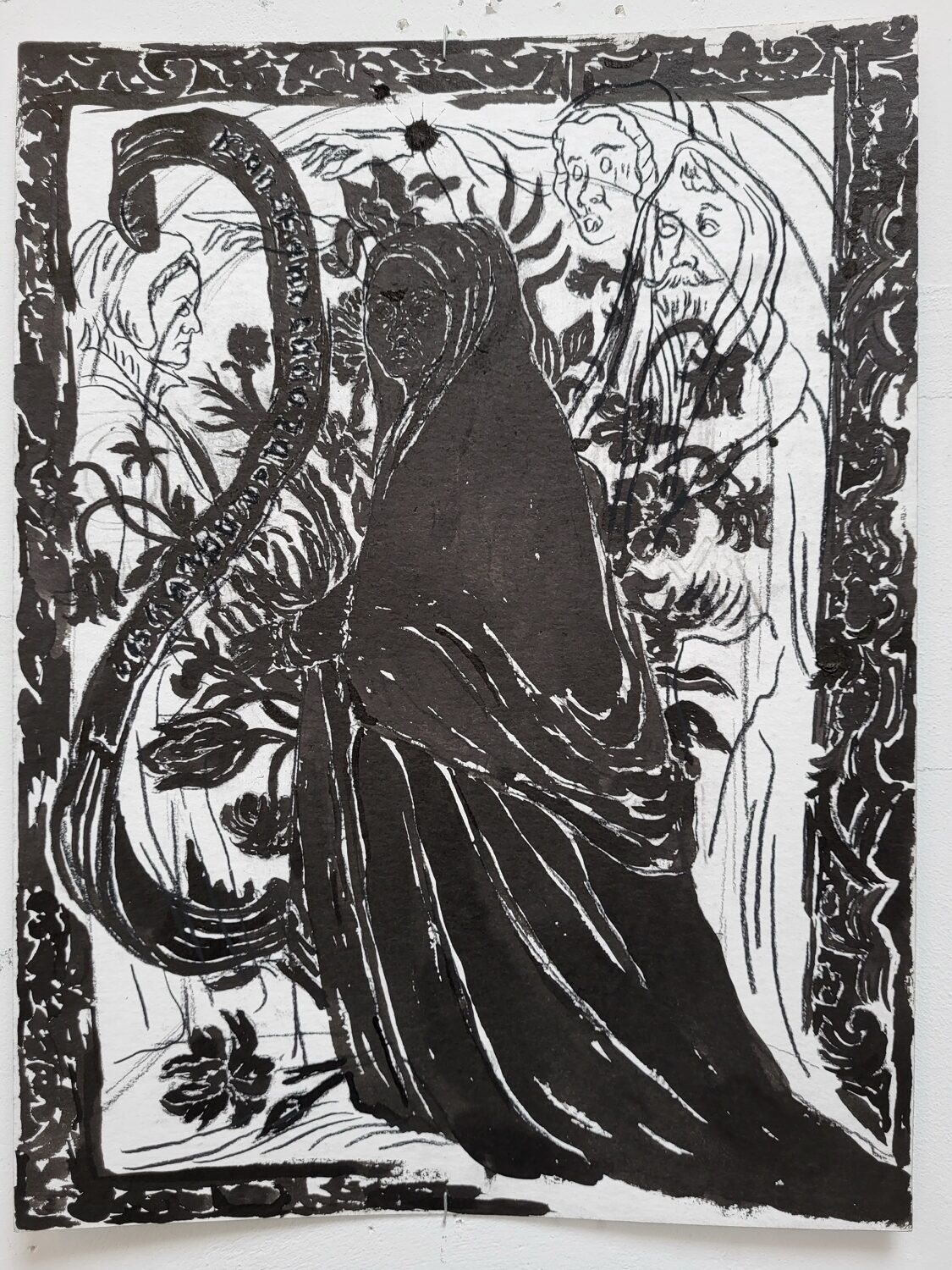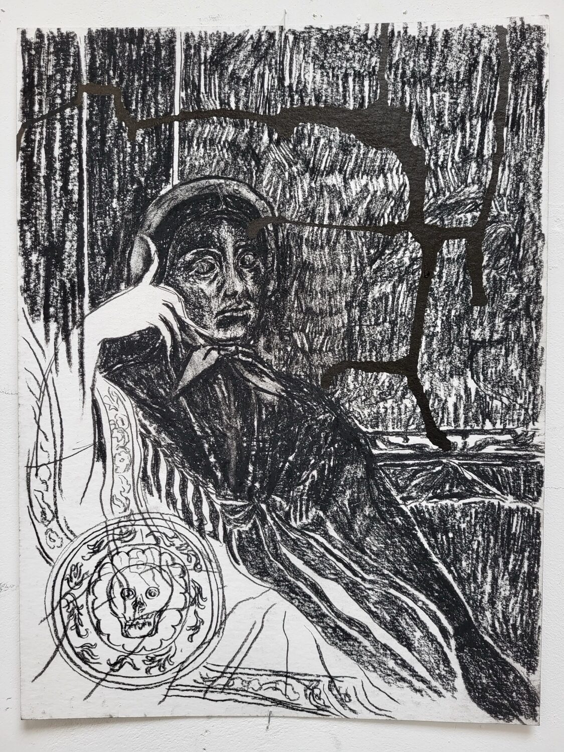 Indian ink and conté pencil on paper